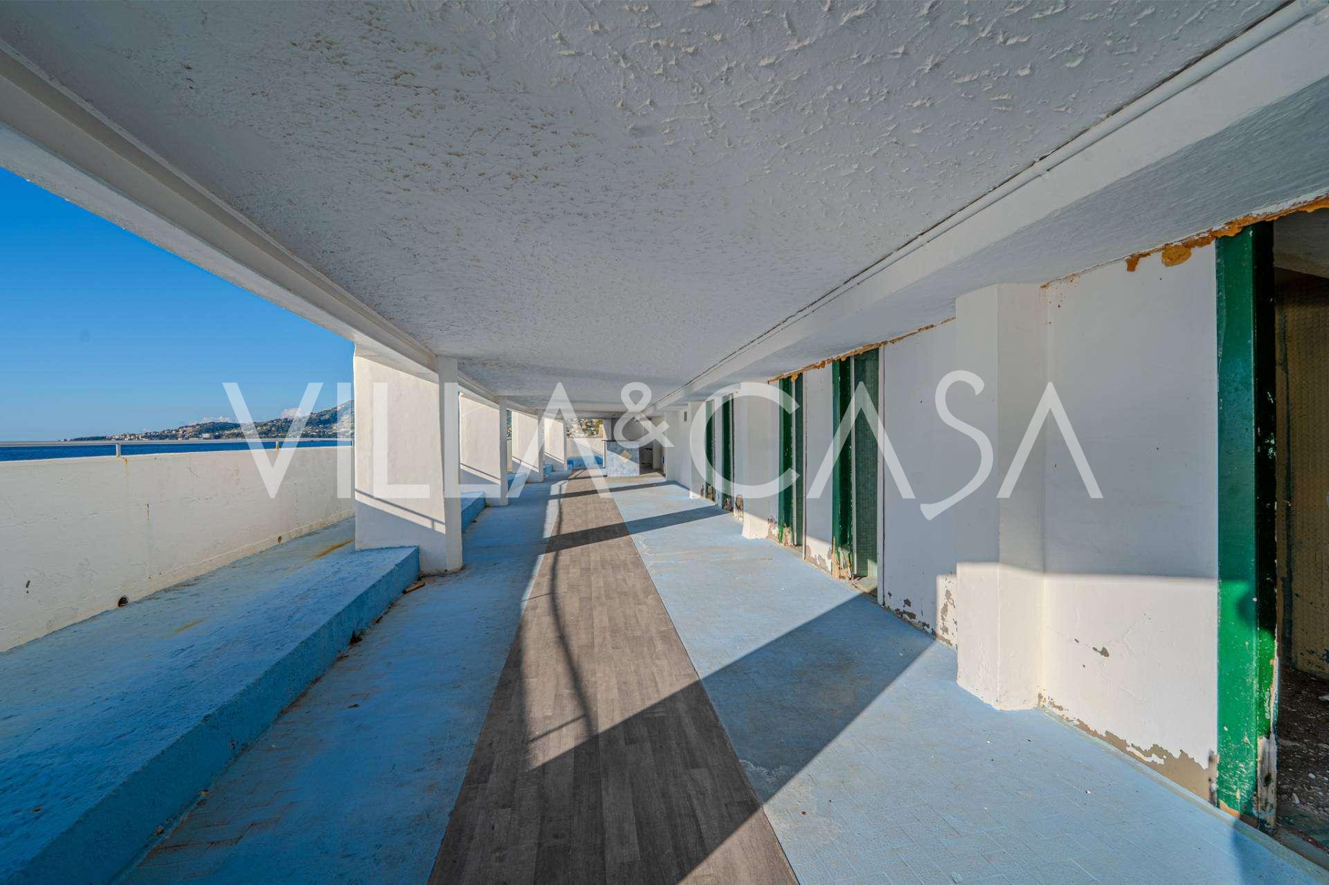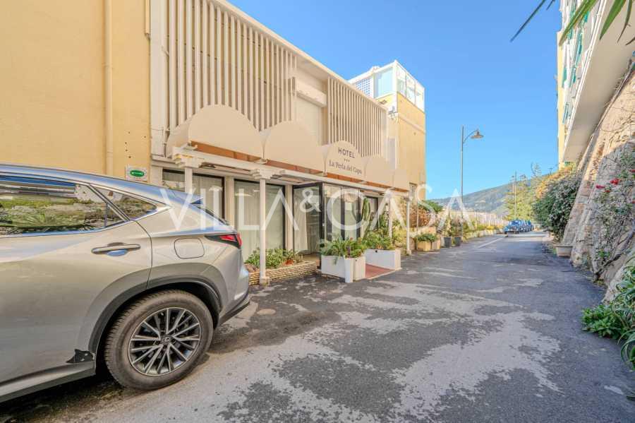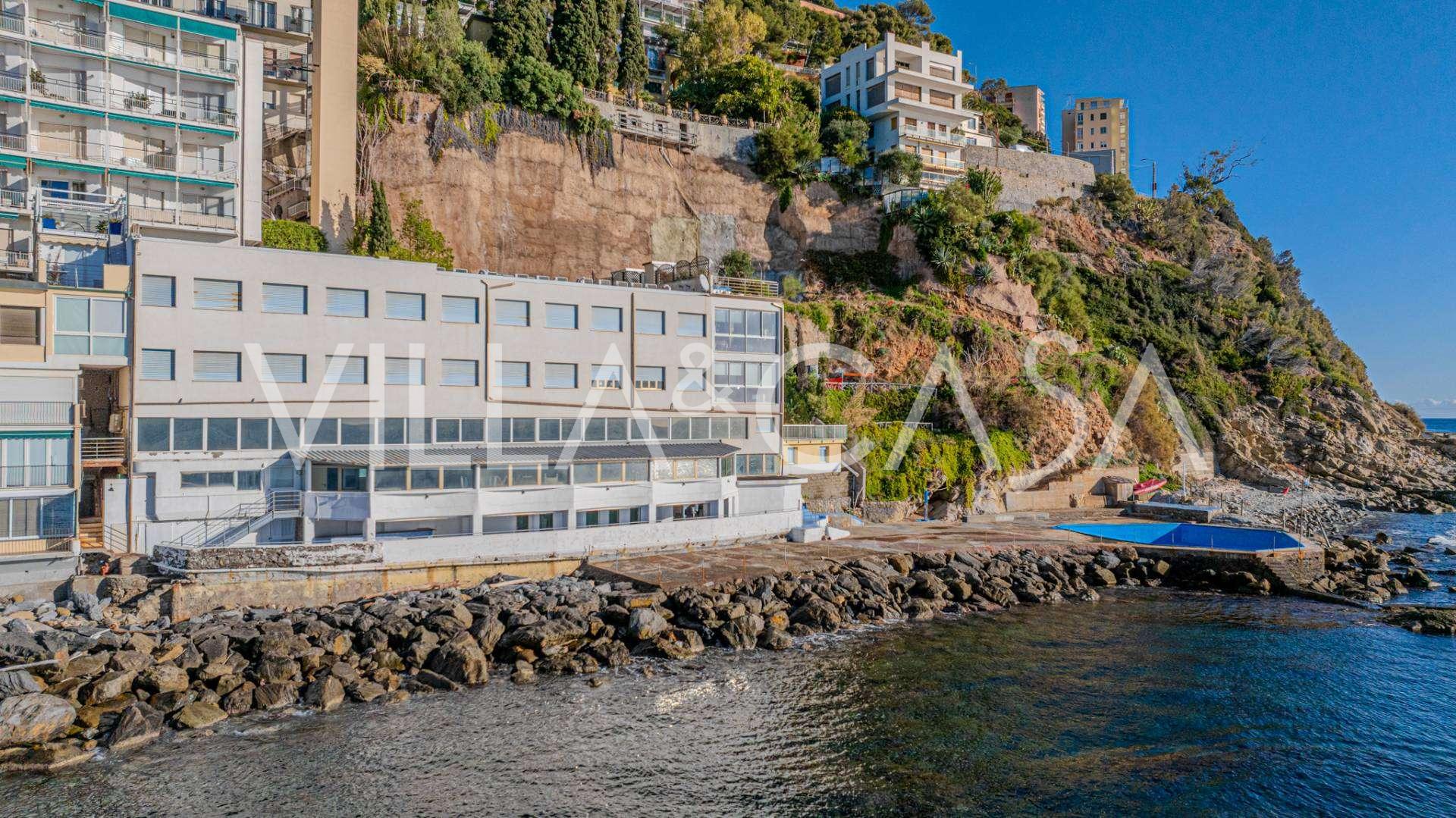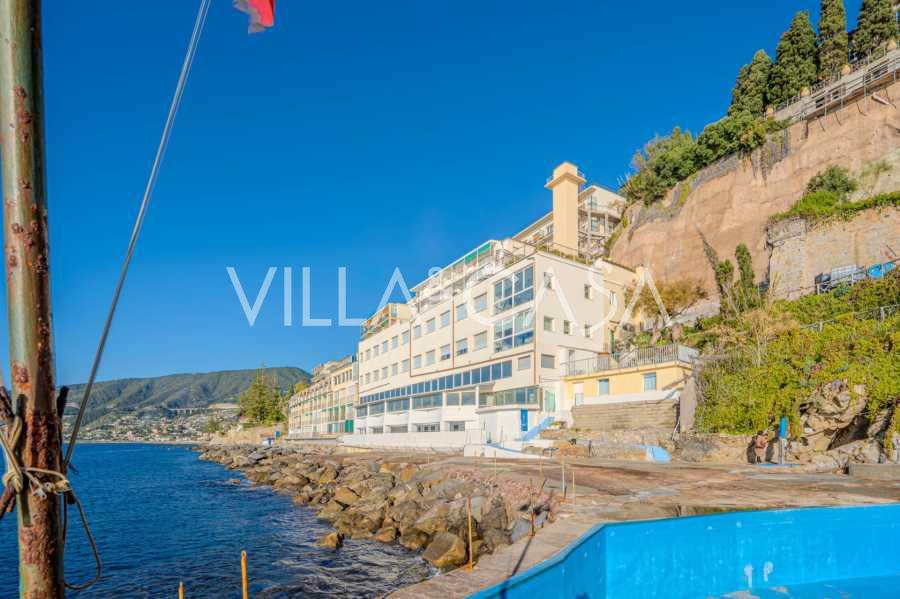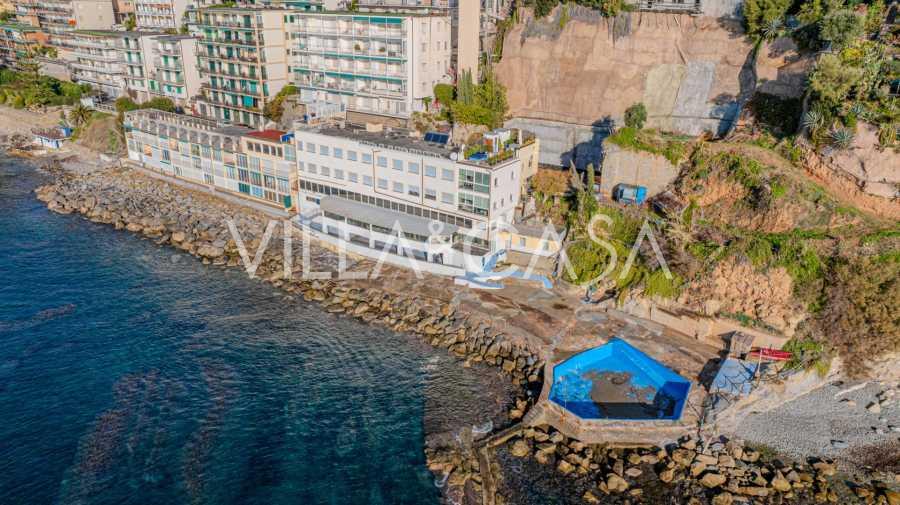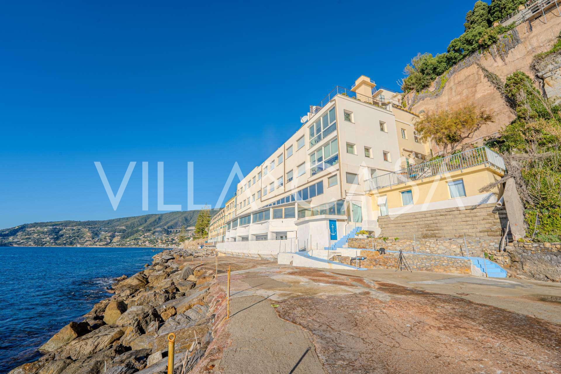 Te koop: een uniek hotel in Ospedaletti, gelegen op een bevoorrechte locatie aan de kust, met directe toegang tot de zee en een eigen strand. Vanaf hier heeft u een prachtig panoramisch uitzicht over de zee. Op heldere dagen kunt u een deel van de Franse Rivièra en de Lérins-eilanden zien, en in de wintermaanden bij zonsopgang de contouren van Corsica.