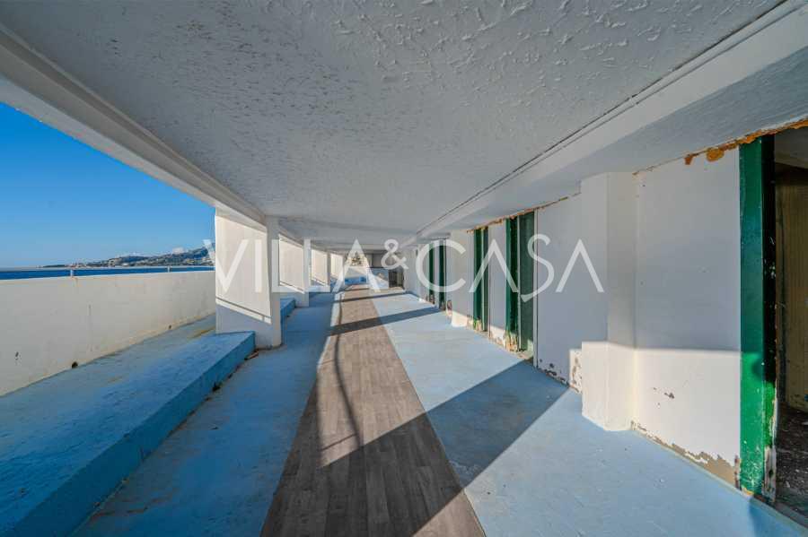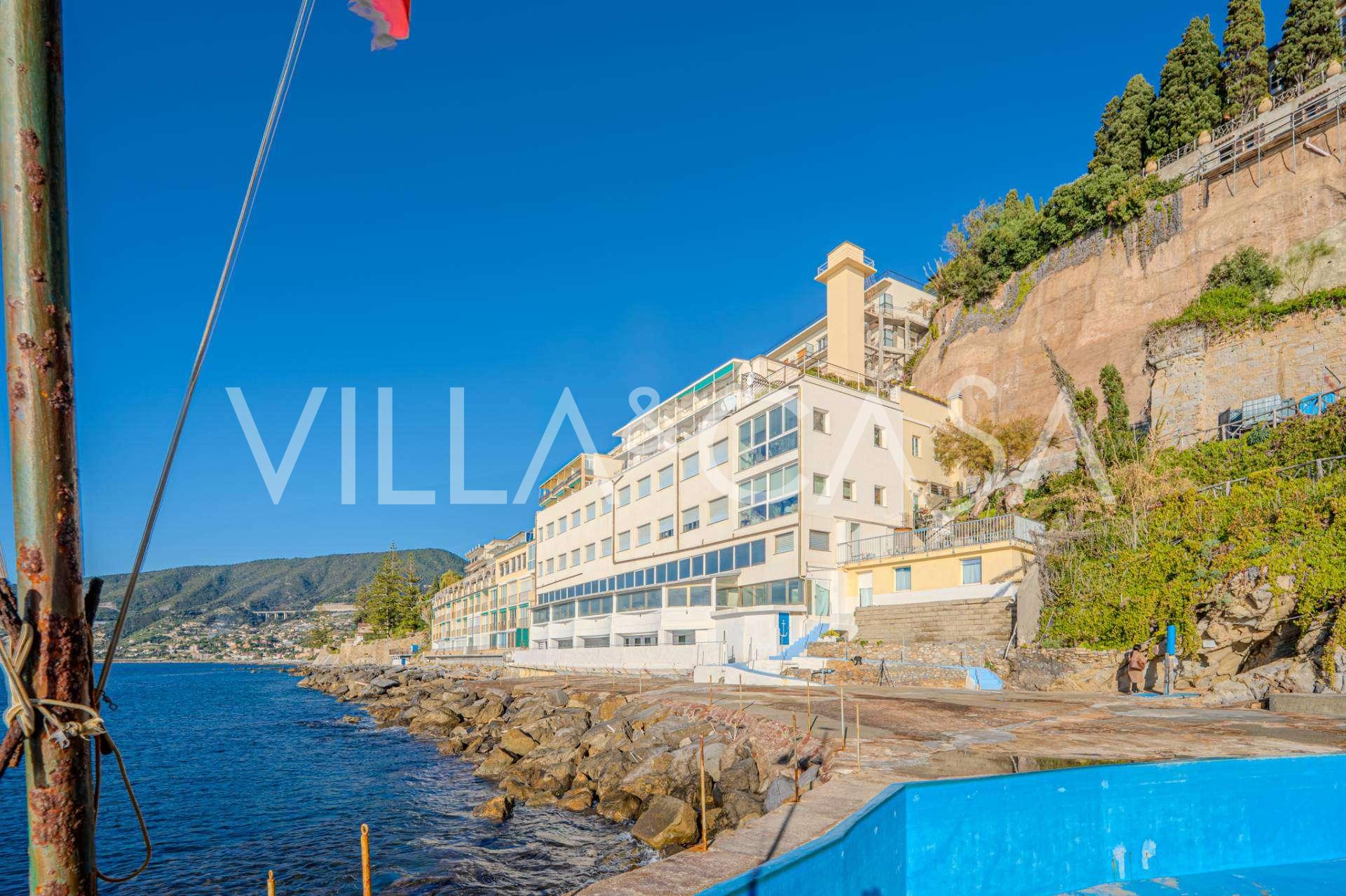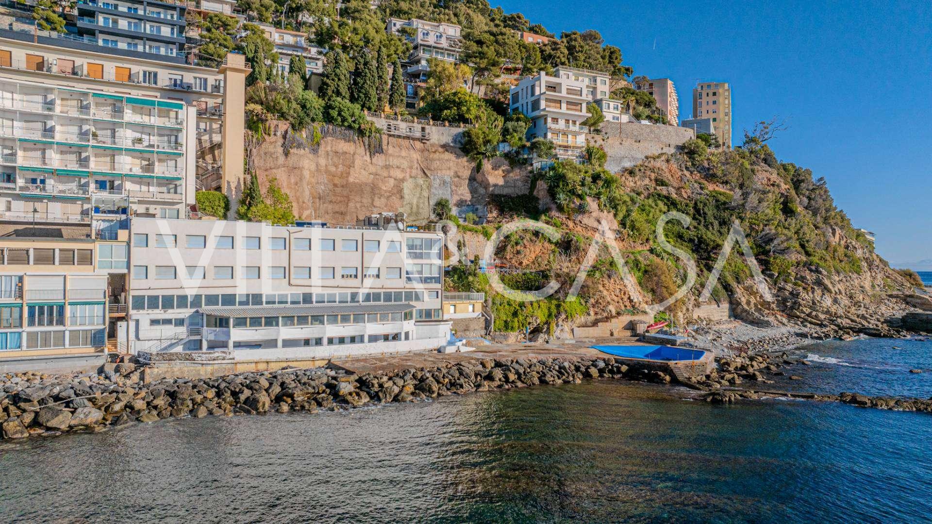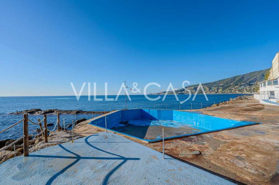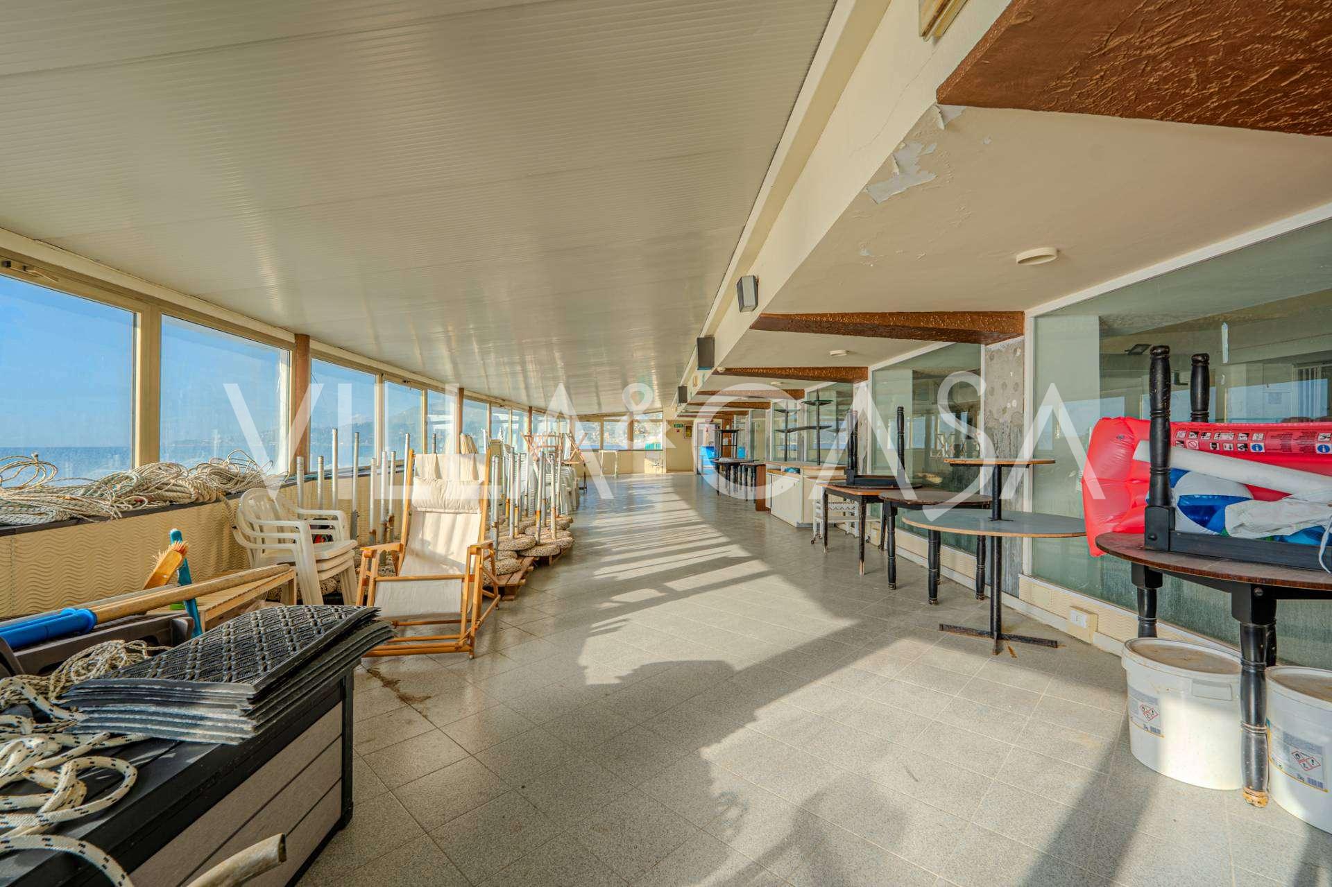Te koop: een uniek hotel in Ospedaletti, gelegen op een bevoorrechte locatie aan de kust, met directe toegang tot de zee en een eigen strand. Vanaf hier heeft u een prachtig panoramisch uitzicht over de zee. Op heldere dagen kunt u een deel van de Franse Rivièra en de Lérins-eilanden zien, en in de wintermaanden bij zonsopgang de contouren van Corsica.