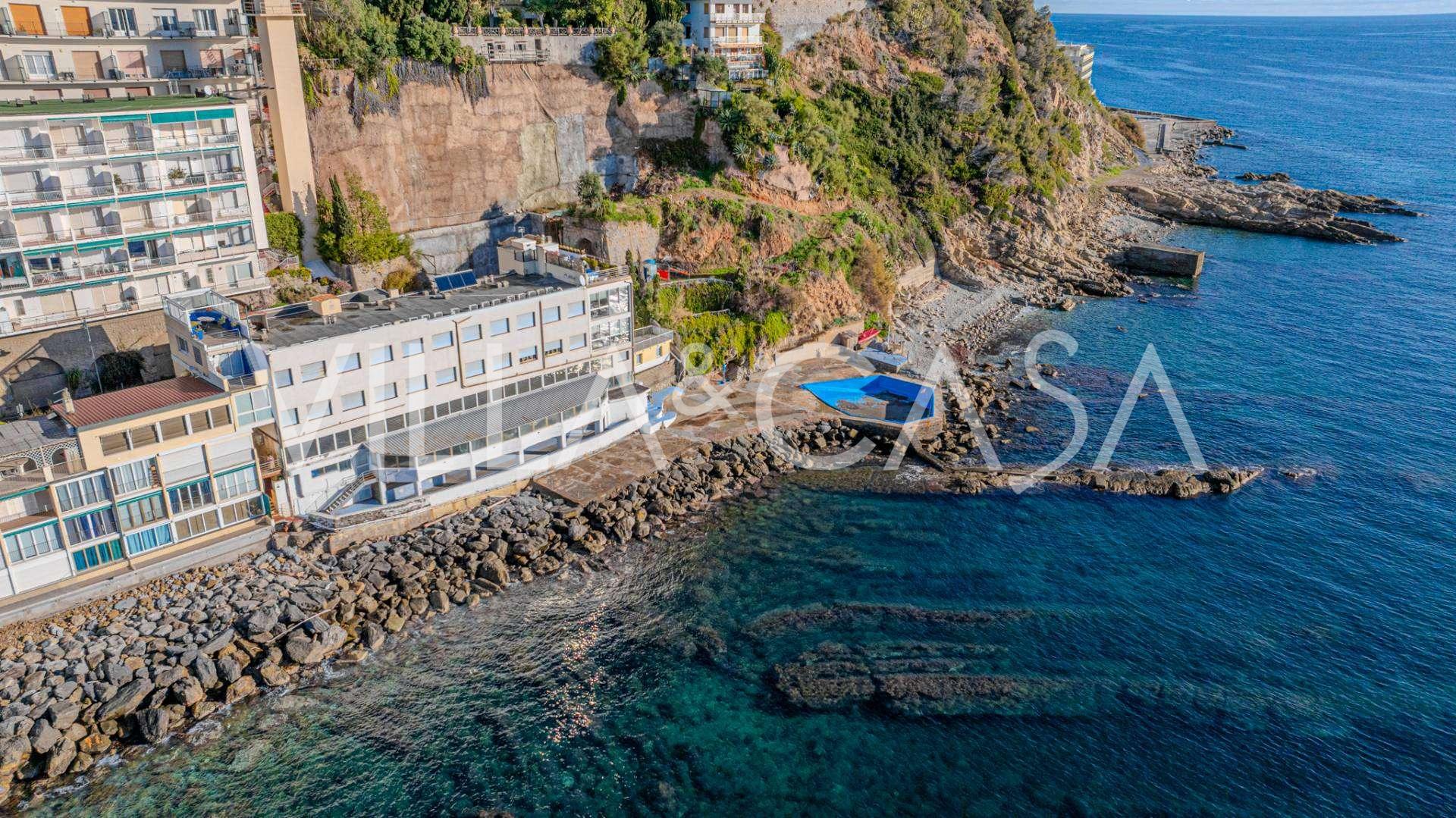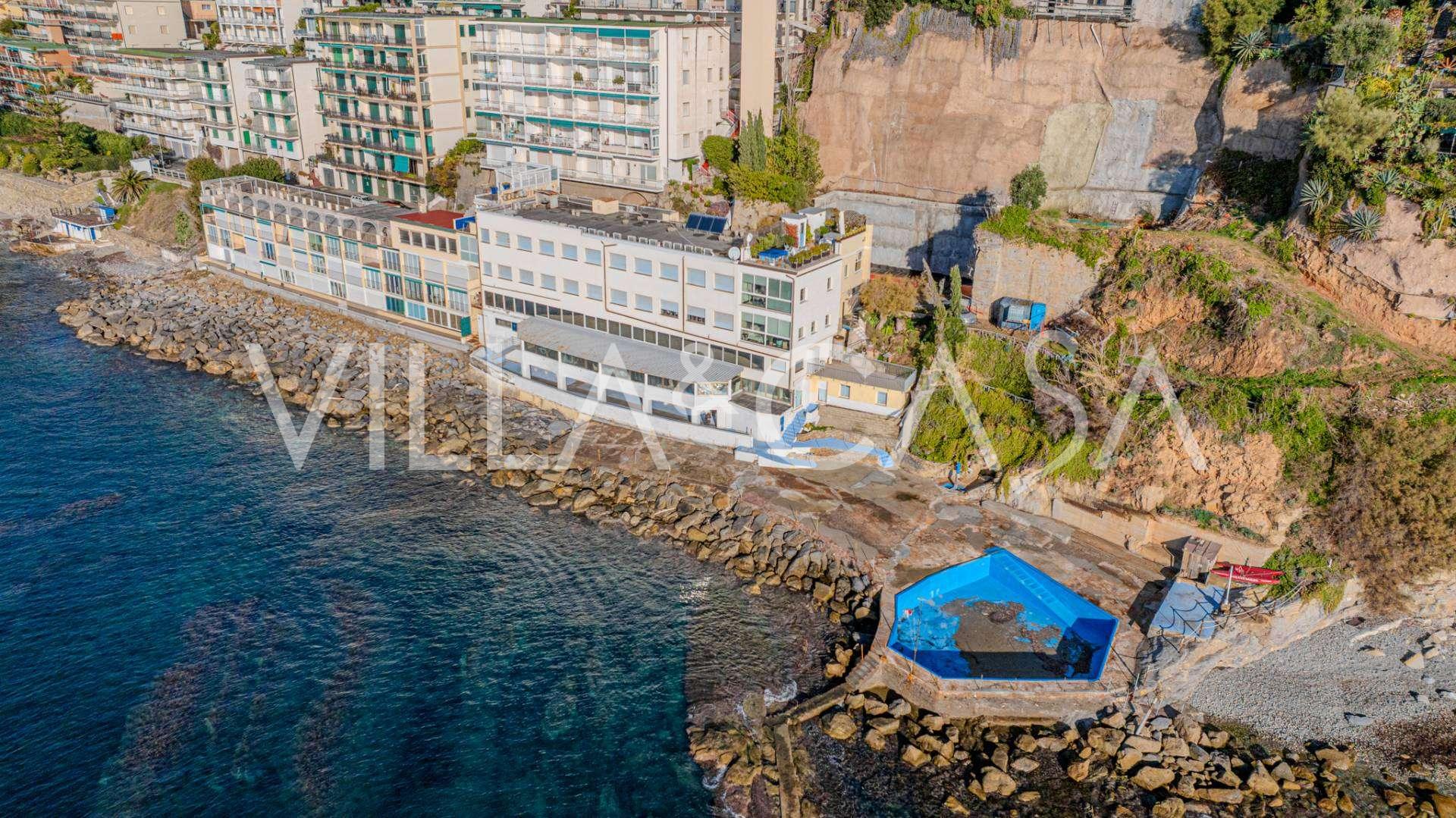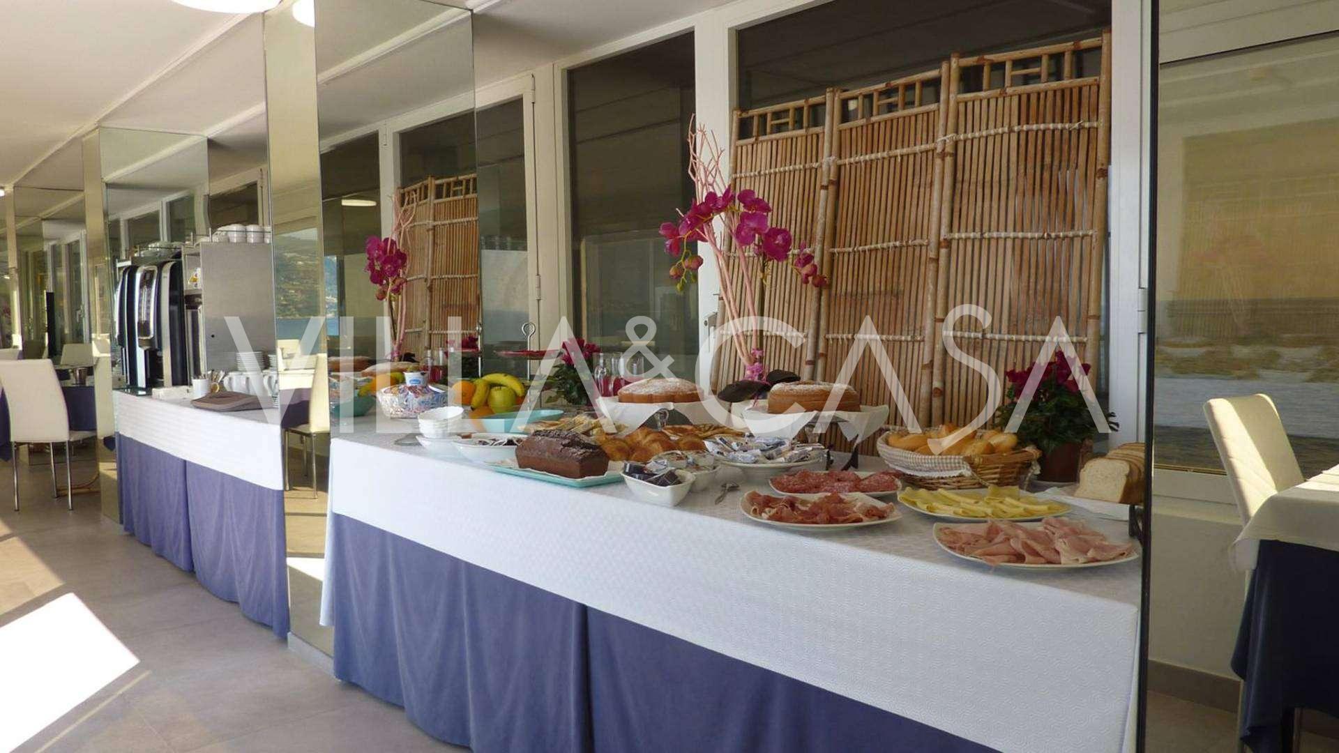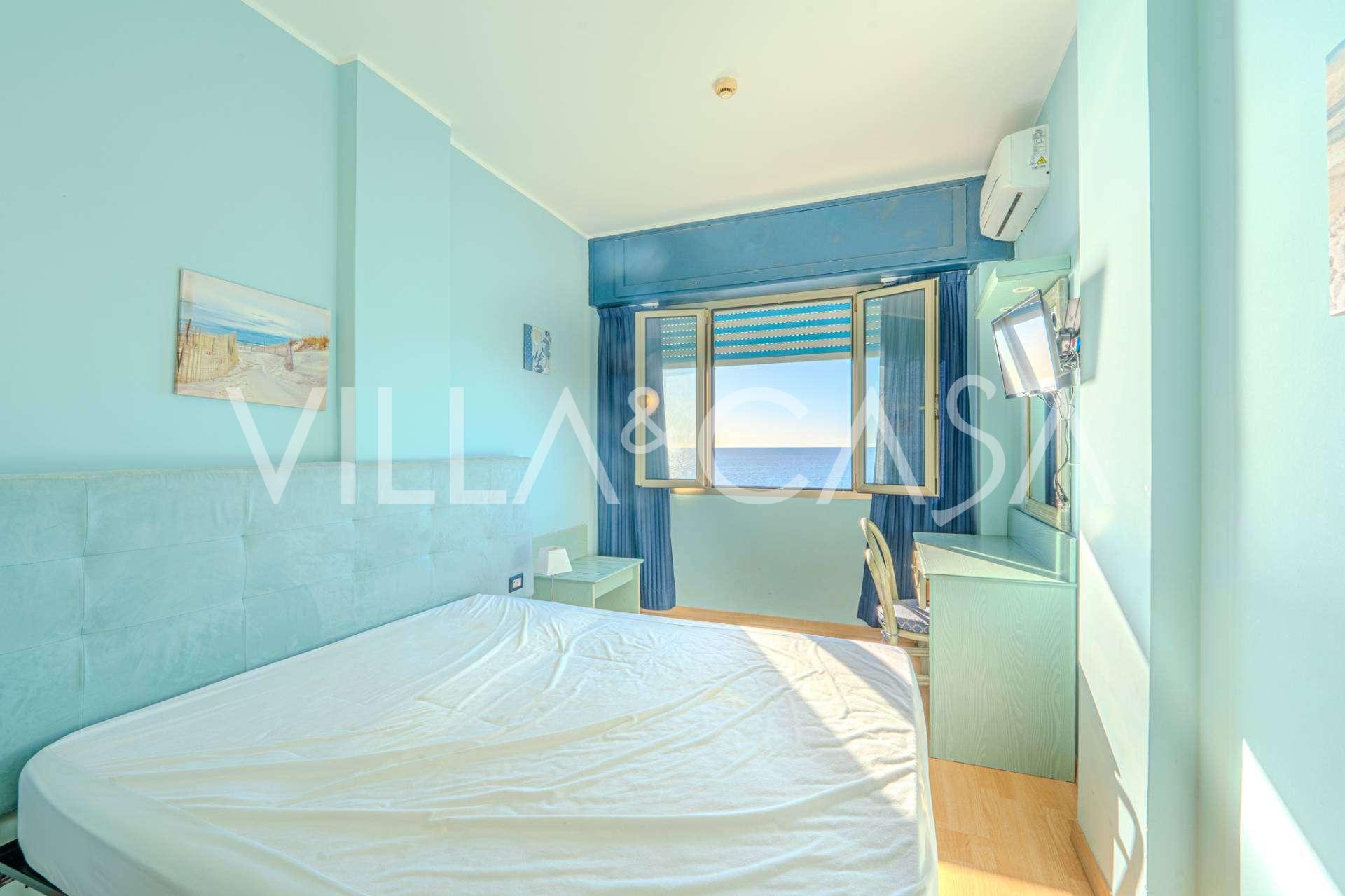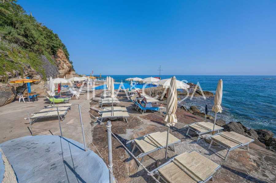 Te koop: een uniek hotel in Ospedaletti, gelegen op een bevoorrechte locatie aan de kust, met directe toegang tot de zee en een eigen strand. Vanaf hier heeft u een prachtig panoramisch uitzicht over de zee. Op heldere dagen kunt u een deel van de Franse Rivièra en de Lérins-eilanden zien, en in de wintermaanden bij zonsopgang de contouren van Corsica.