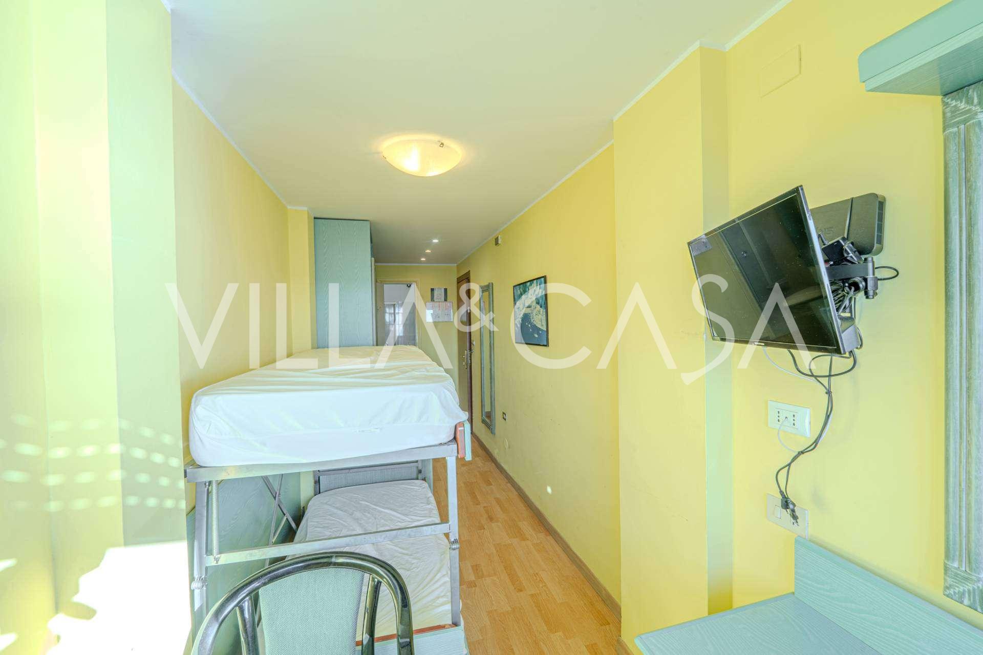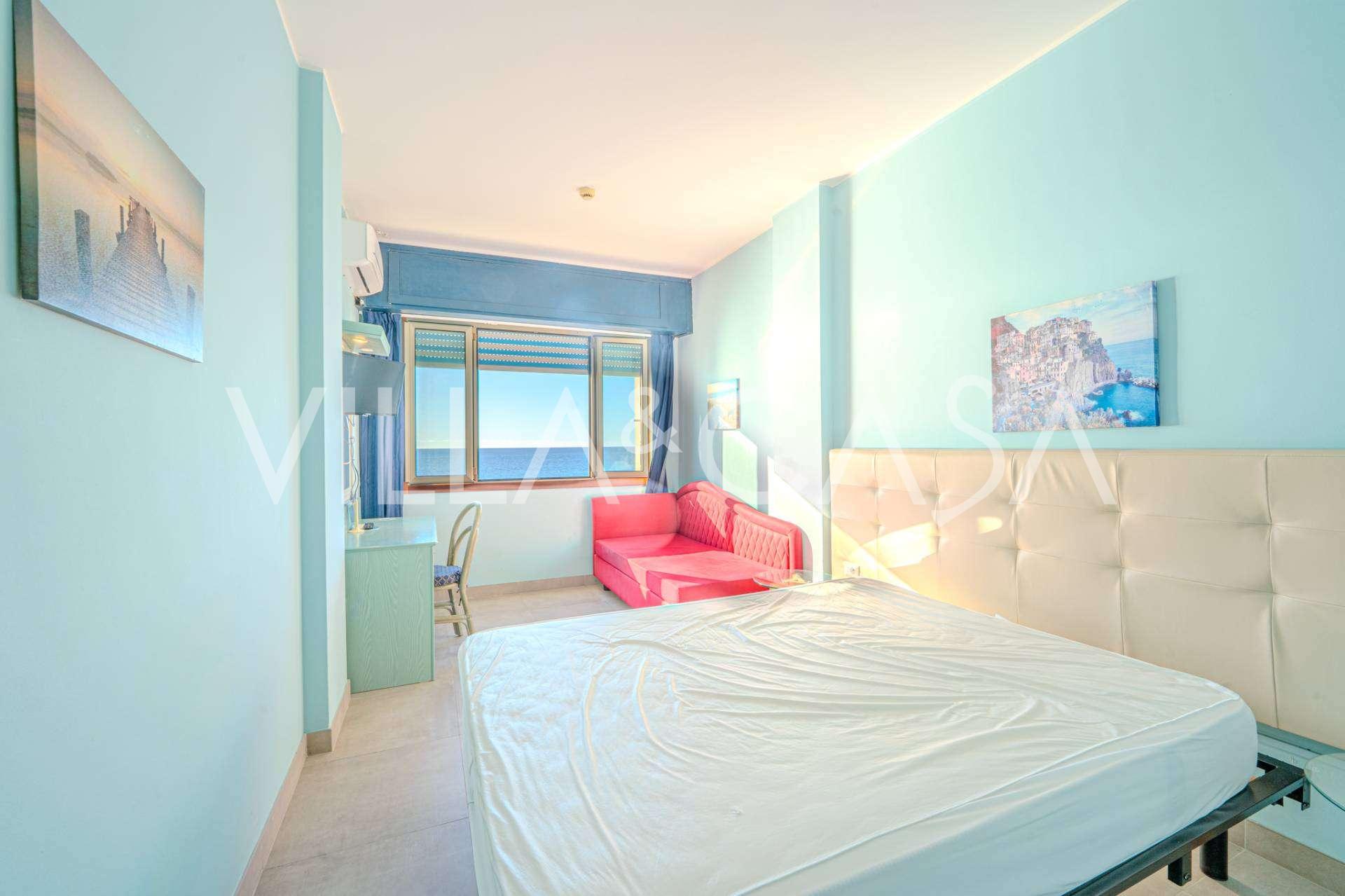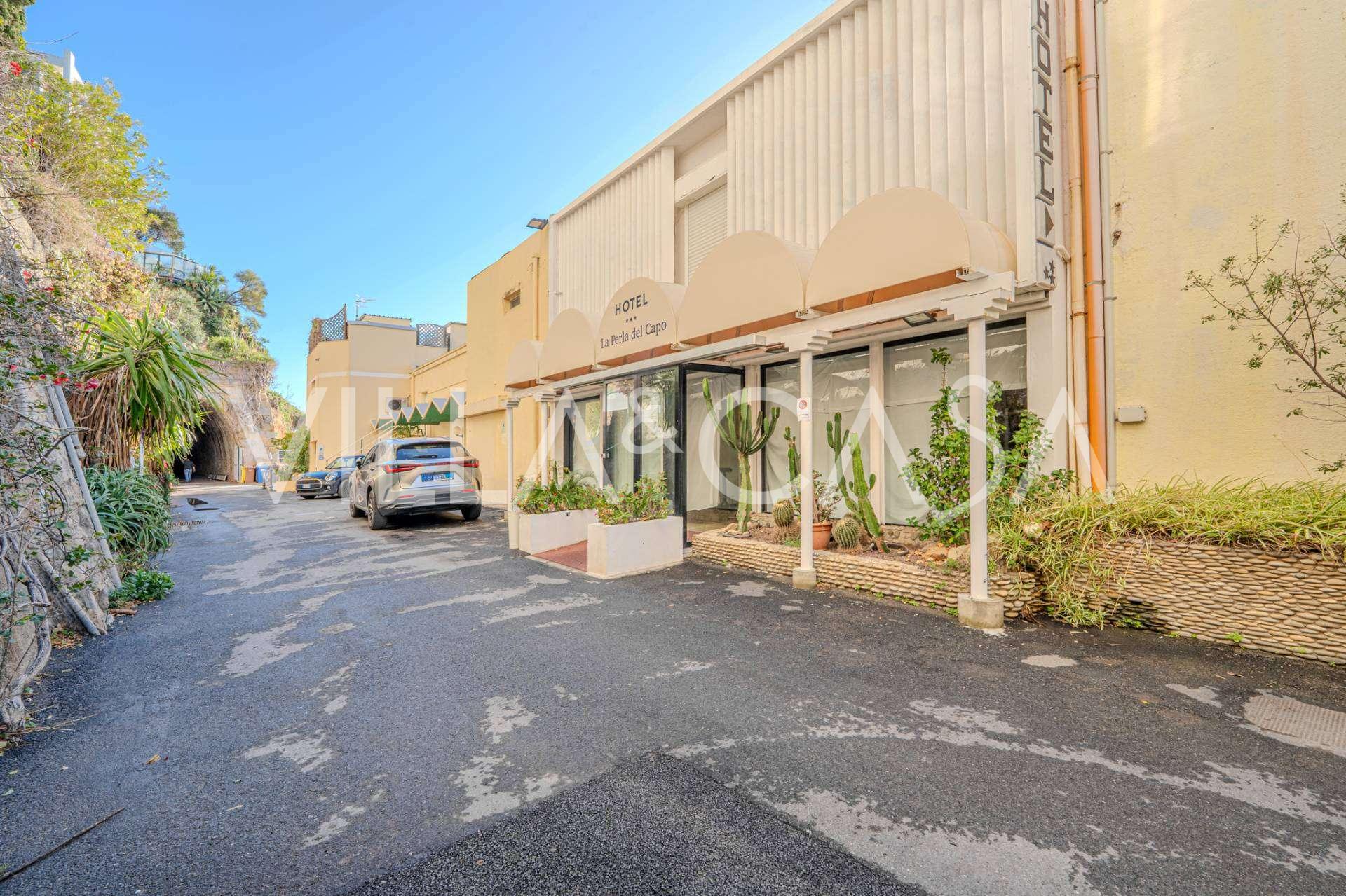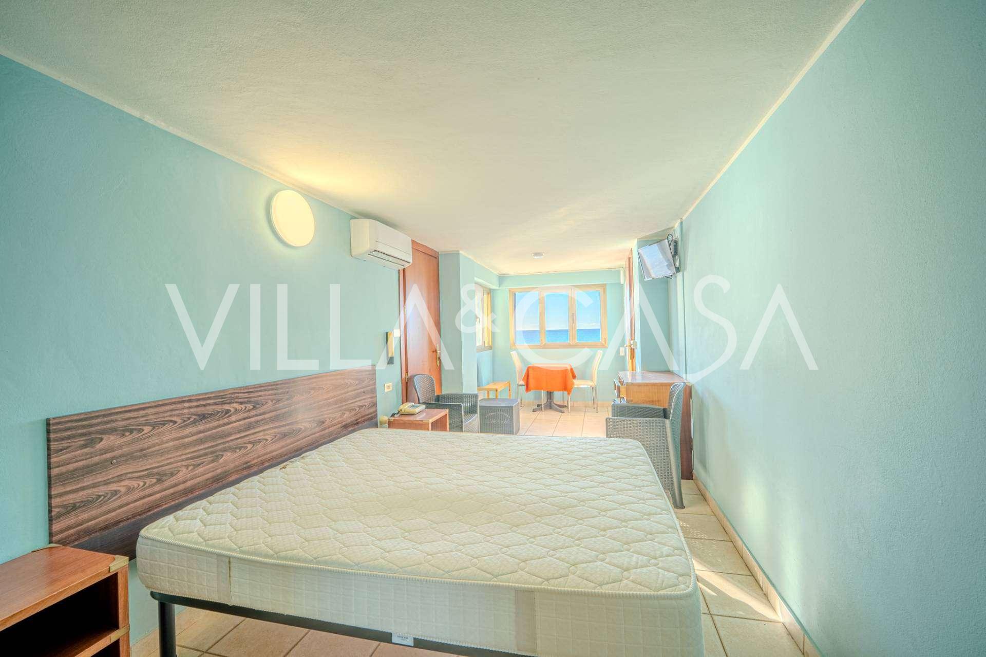 Te koop: een uniek hotel in Ospedaletti, gelegen op een bevoorrechte locatie aan de kust, met directe toegang tot de zee en een eigen strand. Vanaf hier heeft u een prachtig panoramisch uitzicht over de zee. Op heldere dagen kunt u een deel van de Franse Rivièra en de Lérins-eilanden zien, en in de wintermaanden bij zonsopgang de contouren van Corsica.