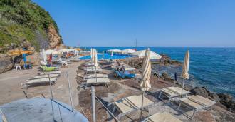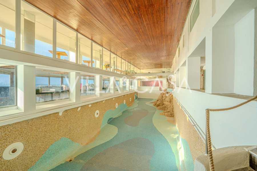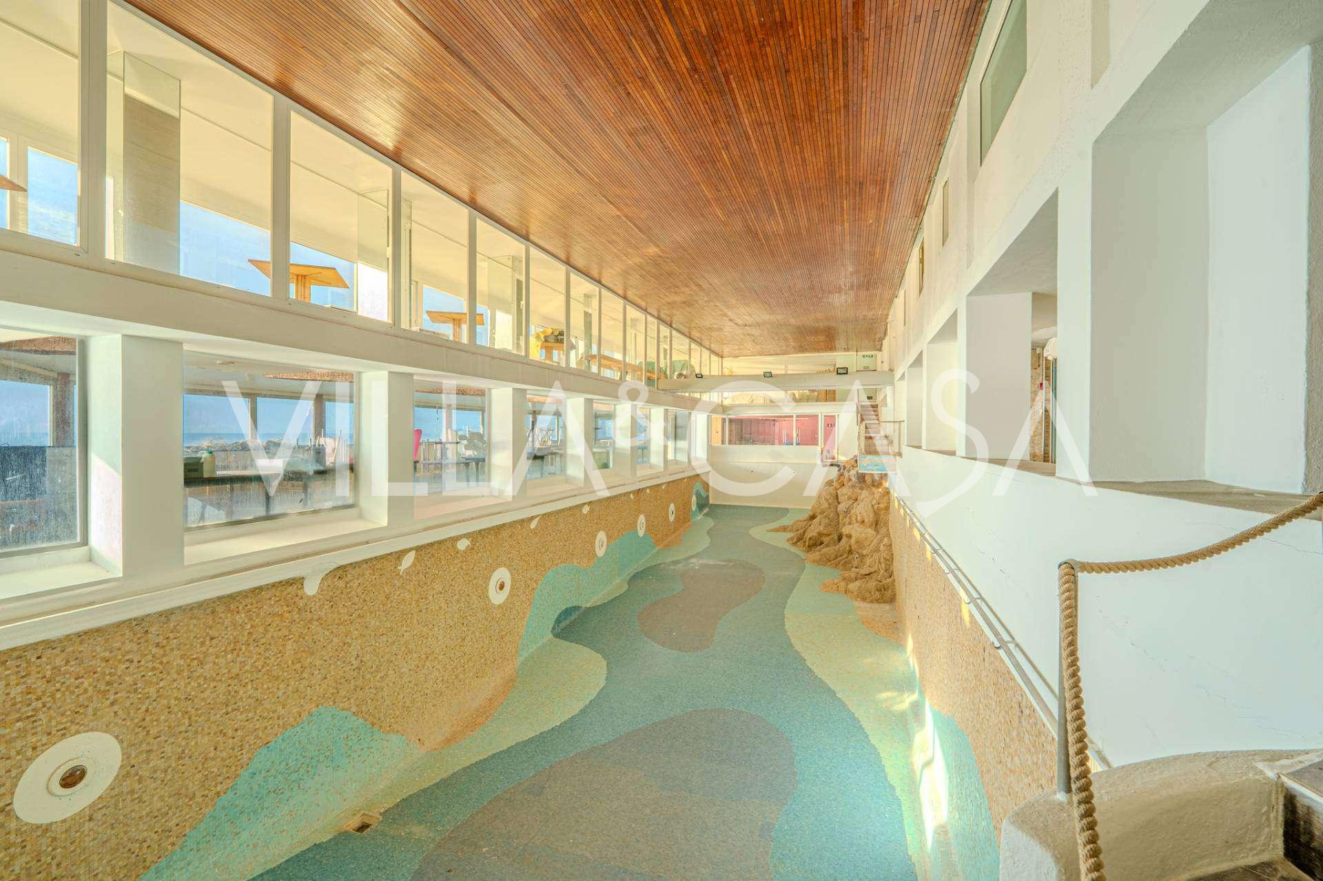 Gasten kunnen genieten van een overdekt zwembad van ongeveer 25 meter lang met verwarmd zeewater. Het hotel beschikt ook over een privéstrand met directe toegang tot de zee, inclusief een zwembad met zeewater, een gebied met ligstoelen en parasols, en een kiezelstrand geschikt voor 100-110 personen, zowel voor hotelgasten als externe bezoekers. In het zomerseizoen opent er een snackbar met lichte snacks, evenals een schoonheidssalon en thalassotherapiecentrum.