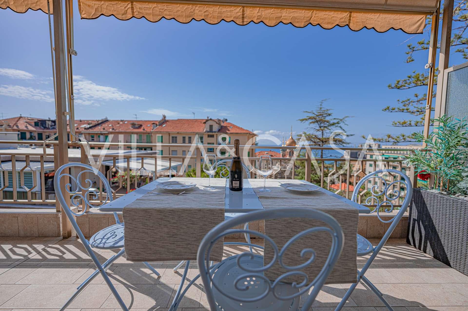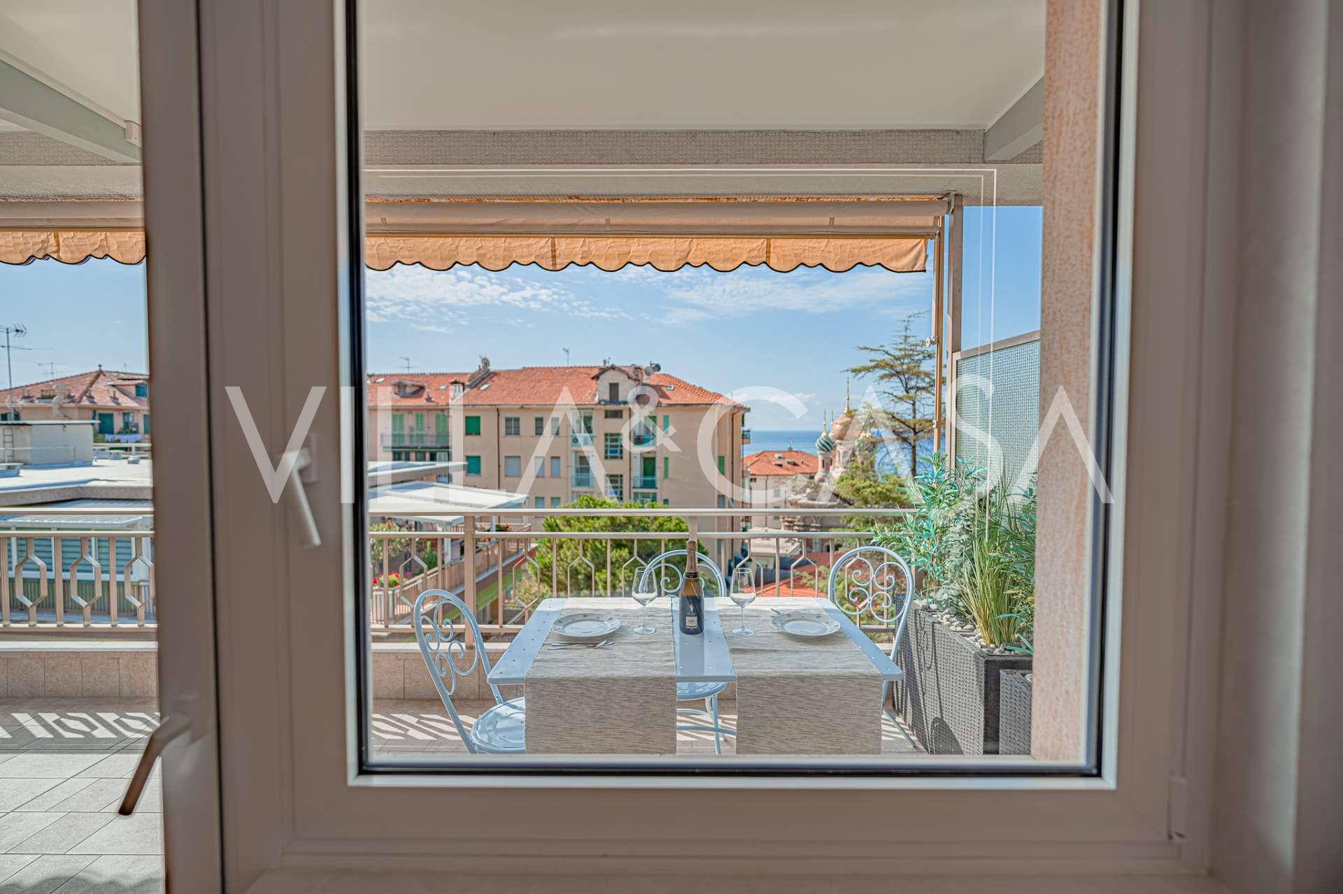 In het hart van Sanremo, vlakbij de beroemde Russische Orthodoxe Kerk en het exclusieve Casino, wordt een exclusief vierkamerappartement van 104 m² aangeboden met een adembenemend uitzicht op zee.