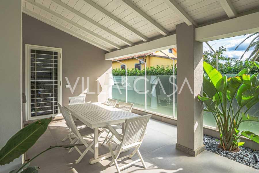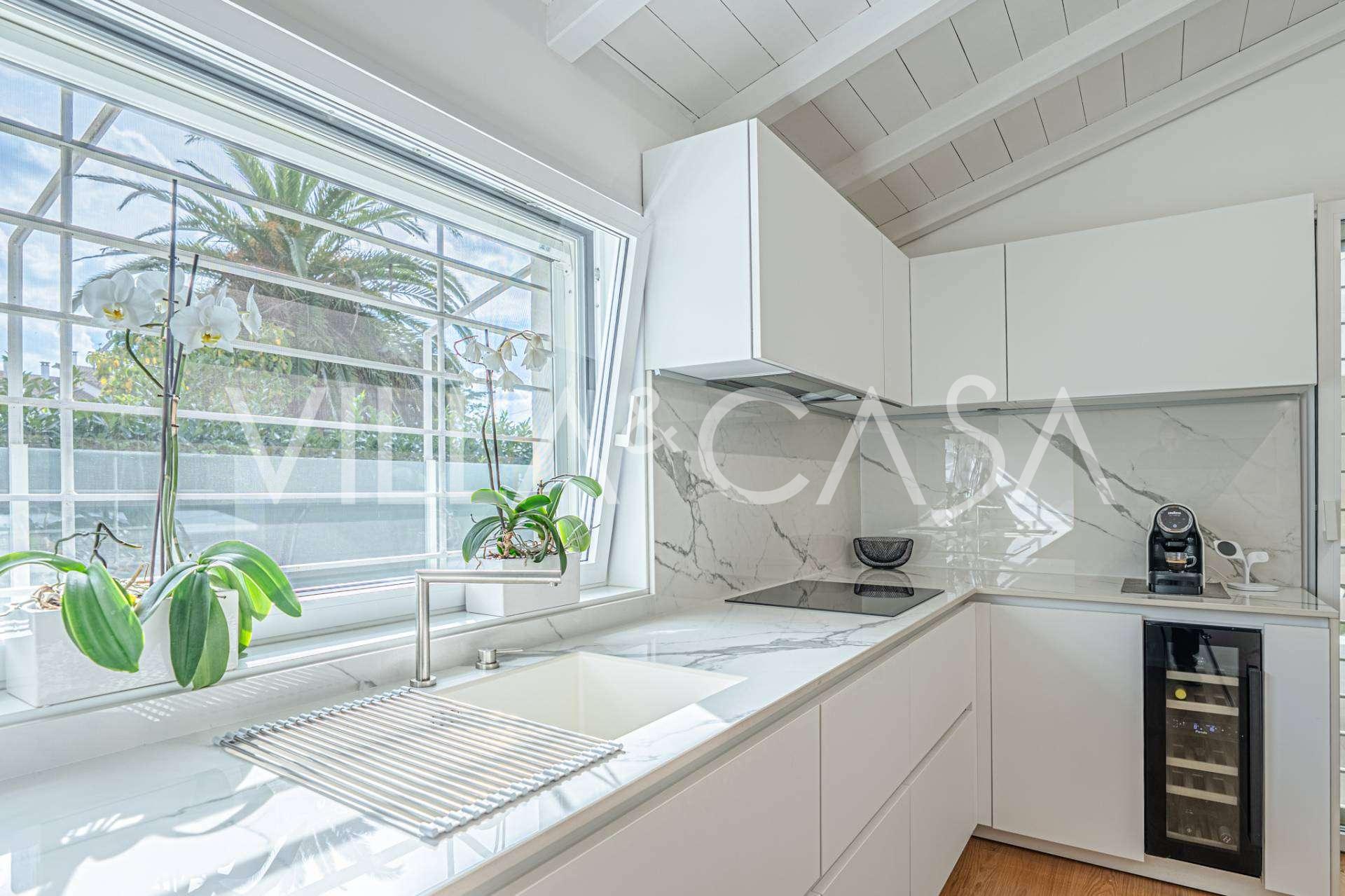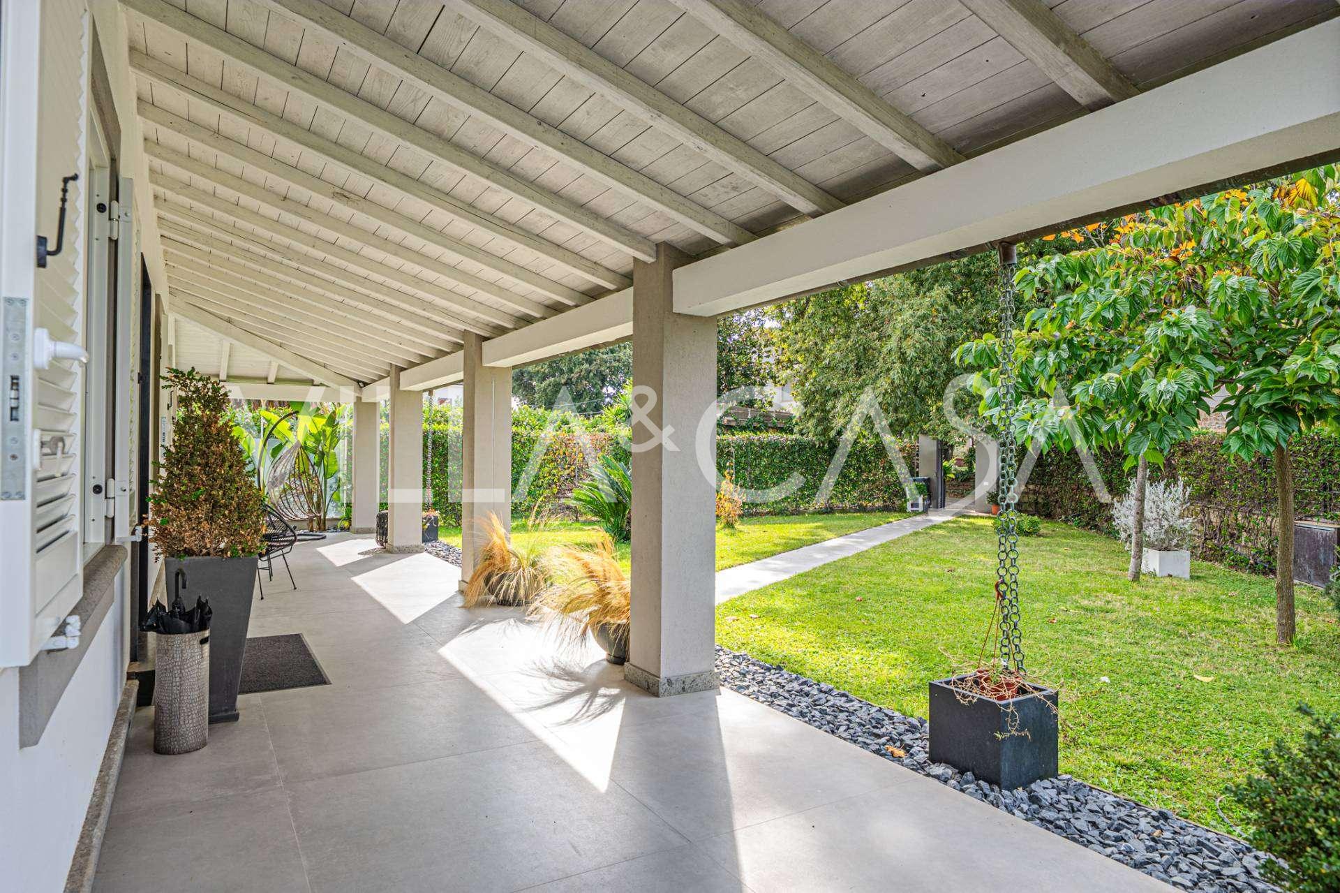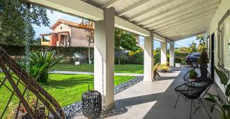 De villa is uitgevoerd met hoogwaardige materialen en voorzien van een autonoom verwarmingssysteem, airconditioning en moderne technische oplossingen. De goed onderhouden tuin biedt gezelligheid en privacy, en de parkeerplaats voor twee auto's verhoogt het comfort.